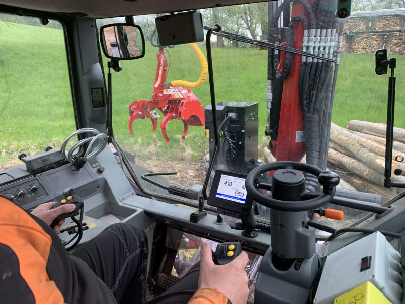 MODUL 350 max. Fälldurchmesser 350 mm MODUL 400 max. Fälldurchmesser 450 mm TAJFUN 3 - Punktkran DOT 50 KGewicht: 1450 KgReichweite: 7025 mm / 710 KgTAJFUN 3 - Punktkran DOT 55 KGewicht: 1570 KgReichweite: 8500 mm / 550 Kg- EHC Steuerung mit 2 Joystick- Eigenölversorgung- Ölkühler- Schlauchpaket ¾”